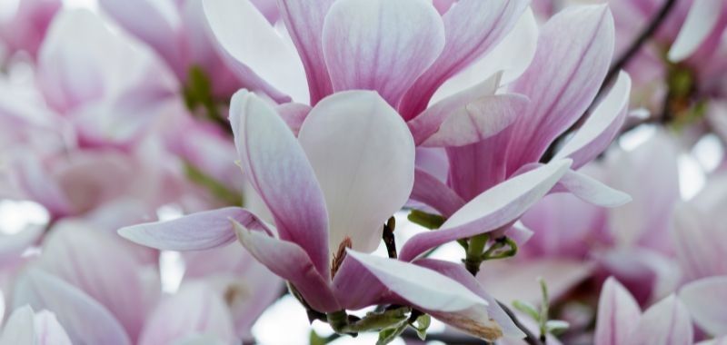 I fiori di magnolia si distinguono immediatamente per il loro tipico colore rosato, le cui sfumature e tonalità vanno dal bianco candido al viola porpora, con forme a tulipano, a coppa o a stella.